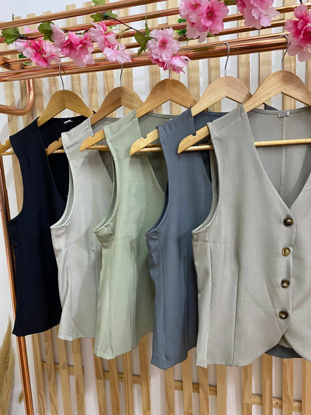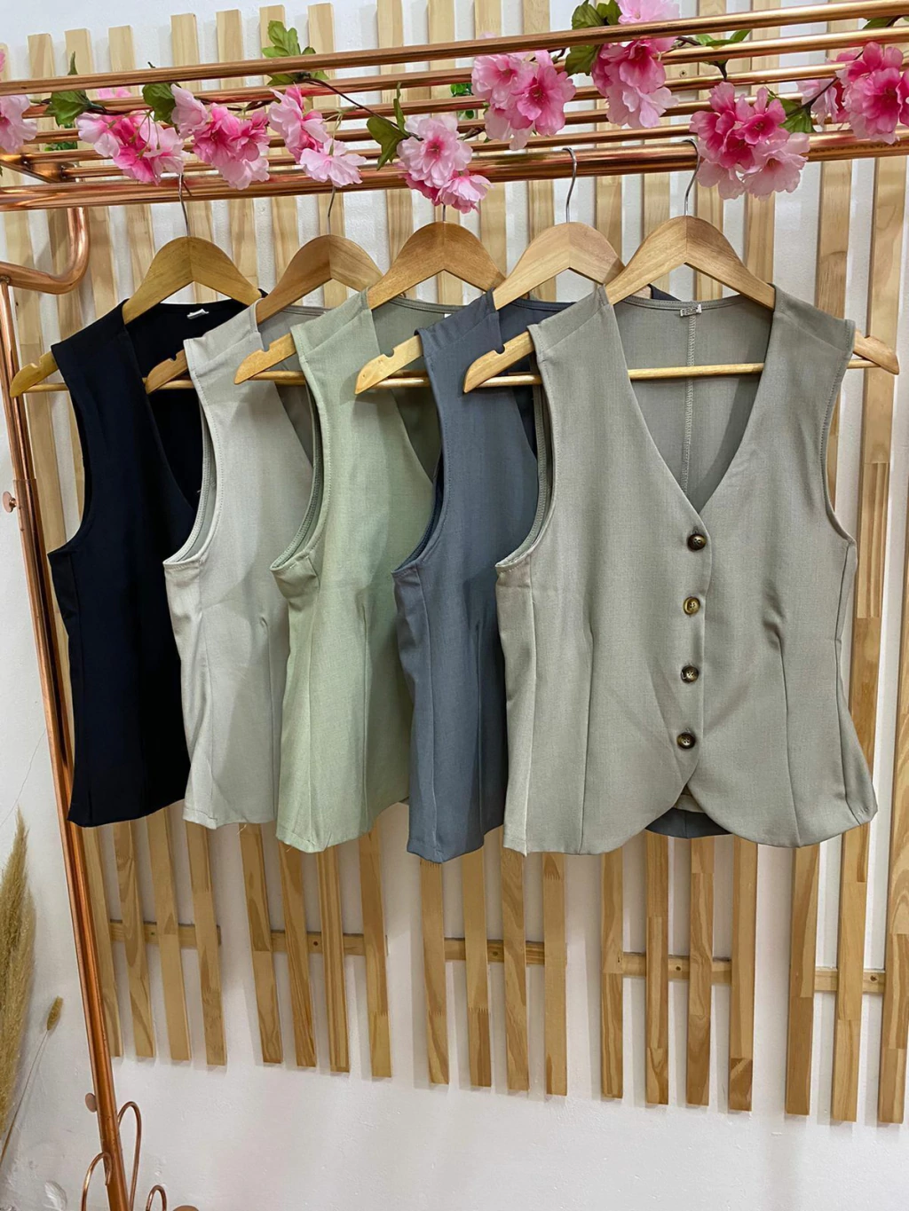 Conjunto Sastrero de pantalón pinzado media cintura elastizada y blazer corto un botón. Art: 9643