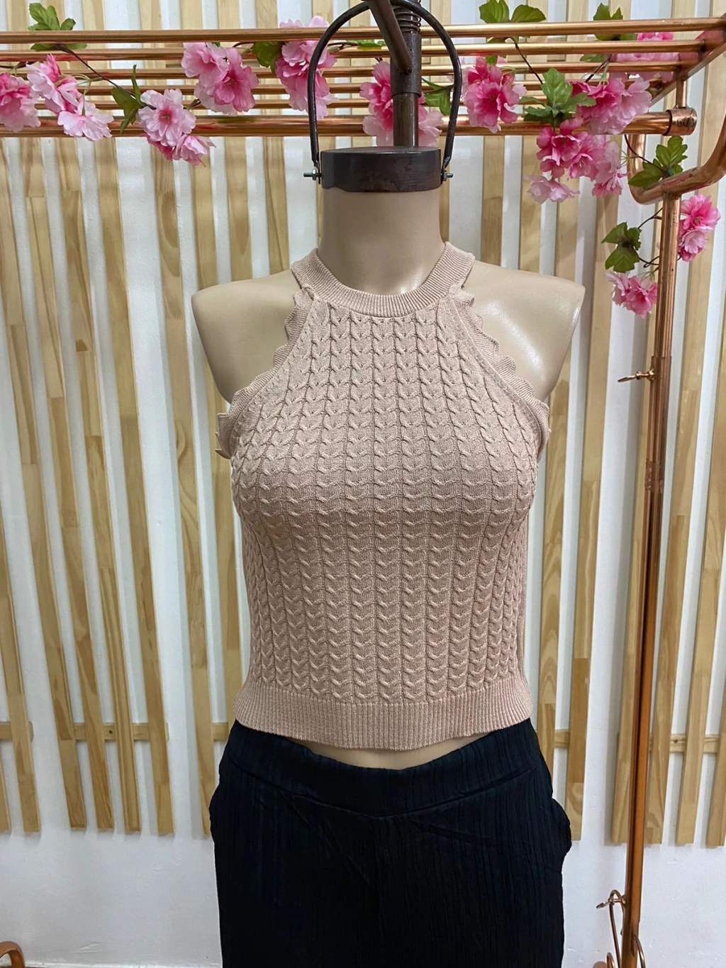 Musculosa de hilo trenzada cuello americano con detalle en los bordes. Art: 3788