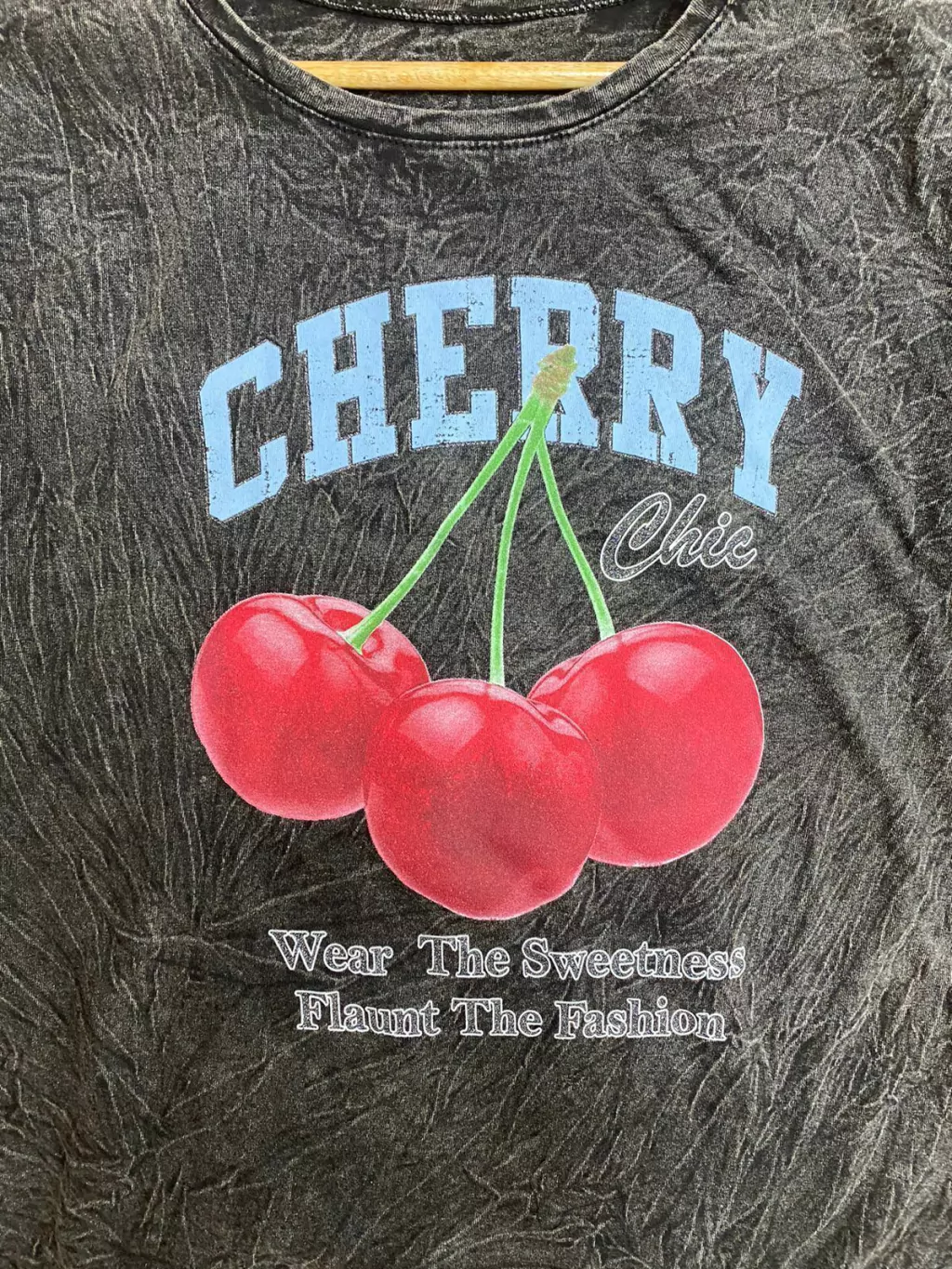 Remera Lavada Cherry Chic con brillito. Art: 1762