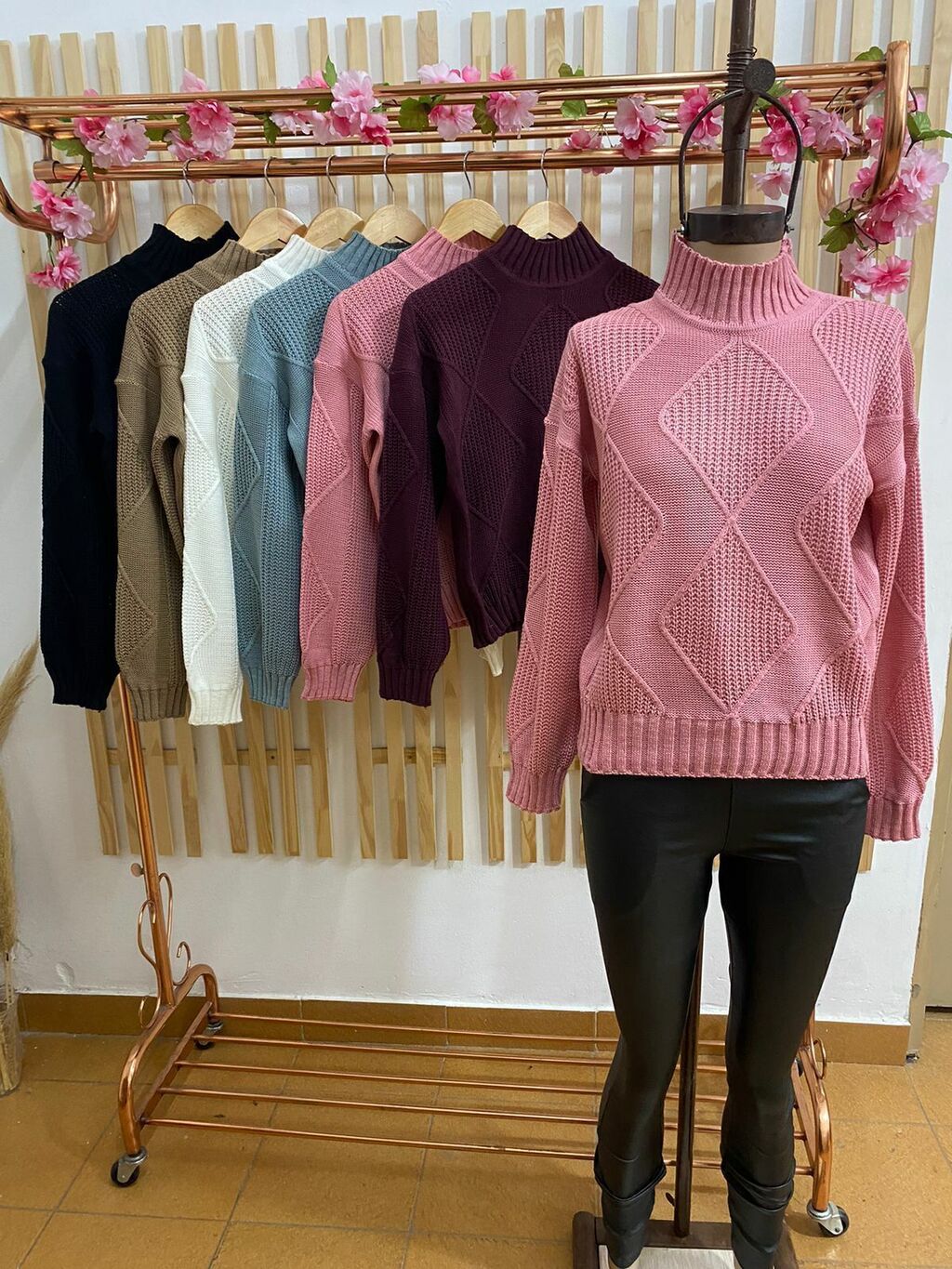 Sweater media polera tejido rombos. Art: 9713