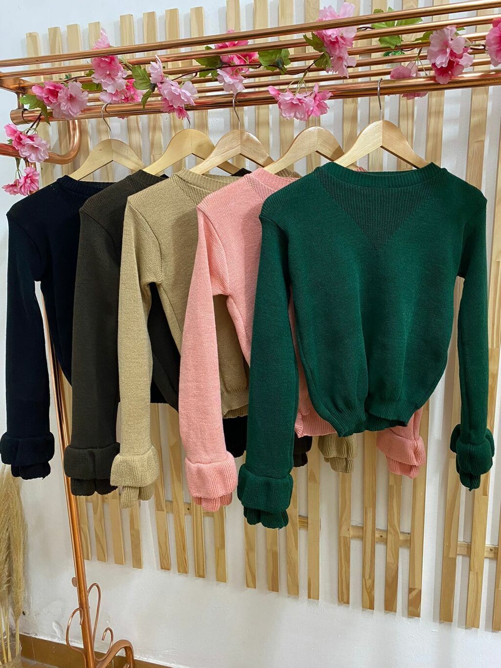 SWEATER PETUNIA TEJIDO LISO COMBINADO CON TEJIDO FANTASÍA EN LA PECHERA Y PUÑOS VOLADITOS. ART: 9586