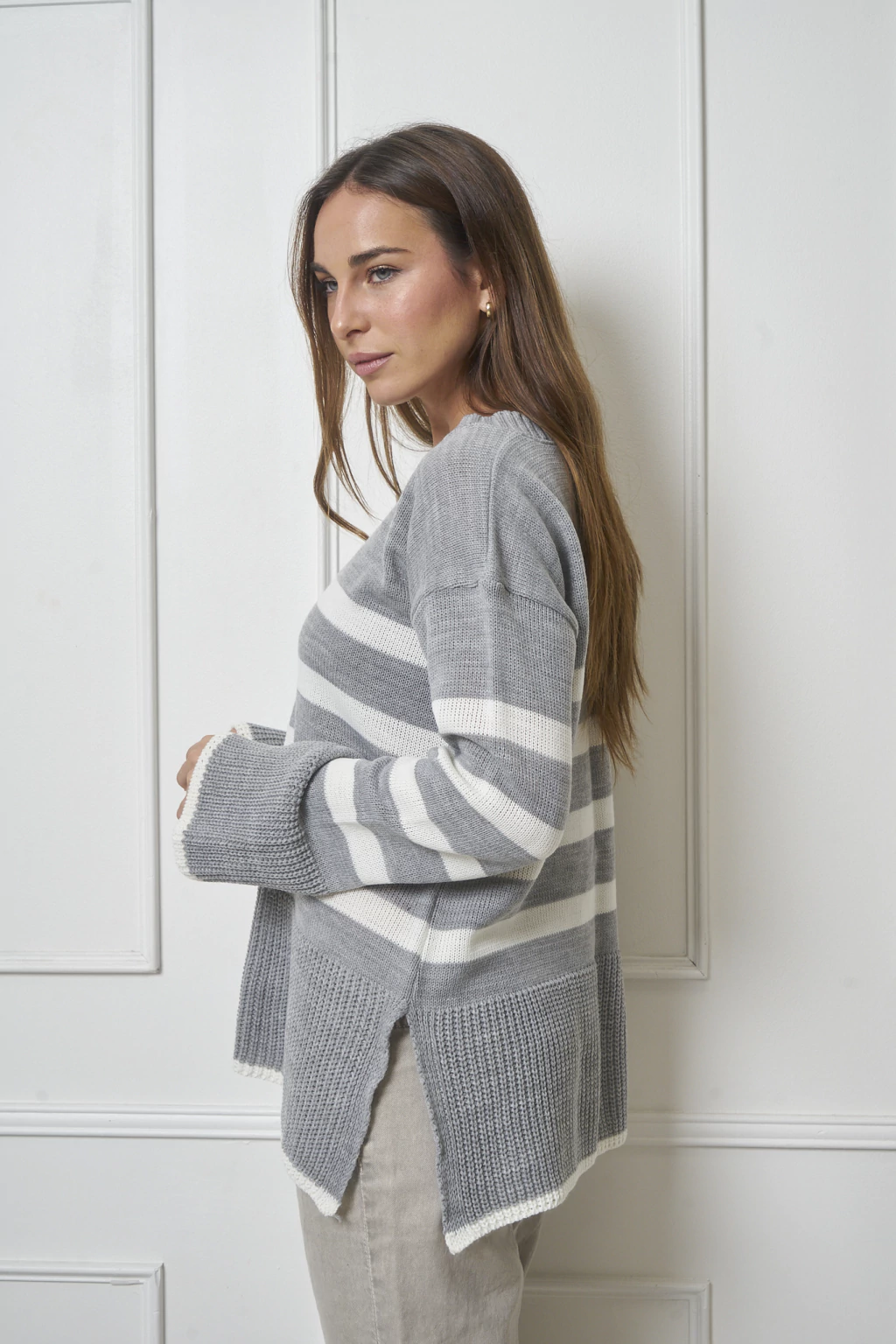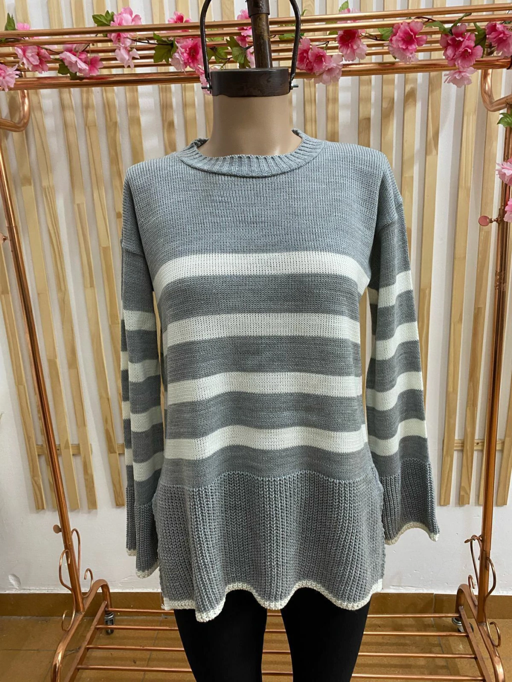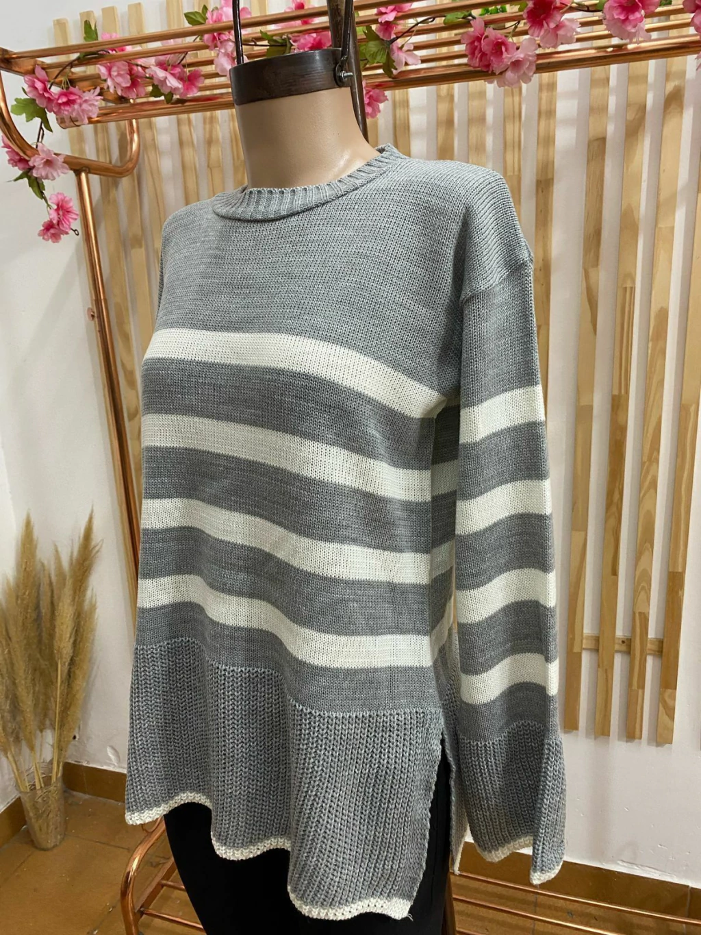 Sweater tejido rayado con abertura a los costados. Art: 9694